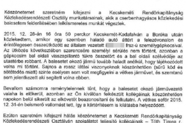 „Bevallom, számomra reménytelennek tűnt, hogy a balesetet okozó járművezető valaha is előkerül…”.