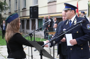 Dr. Nagy László r. ezredes megyei rendőrfőkapitány emléklapot nyújtott át a fogadalmat tevő diákok részére.