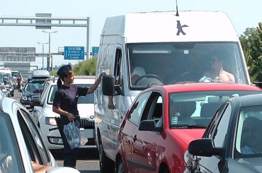 Torlódás alakult ki a Röszke Autópálya-határátkelőhely kilépő oldalán. A rendőrök és a Vöröskereszt önkéntesei hűsítővel látják el a várakozókat.