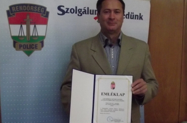 Vincze Lajos nyugállományú rendőr alezredes emléklapot vehetett át Tóth András rendőr ezredes megyei rendőrfőkapitány helyettestől.