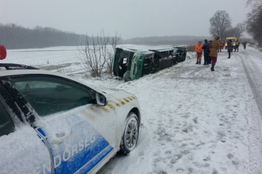 Egy menetrend szerint közlekedő autóbusz felborult Barcs és Drávaszentes között, tíz ember megsérült.