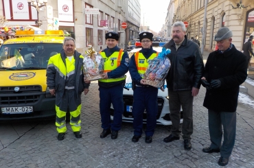 A Magyar Autóklub jelképes ajándékkal köszöntötte a győri egyenruhásokat.
