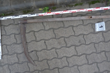 A helyszínen elfogták a rendőrök azt a férfit, aki a gyanú szerint kaszával támadt egy 40 éves helyi lakosra.