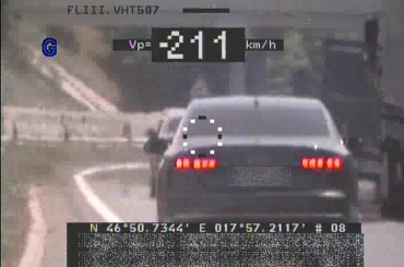 A rendőrök jelentős sebességtúllépés miatt mérték be egy Audi típusú személygépkocsi vezetőjét az M7-es autópályán, Zamárdi térségében.