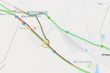 A megnövekedett forgalom miatt torlódnak a gépjárművek a hegyeshalmi határátlépési pont közelében.