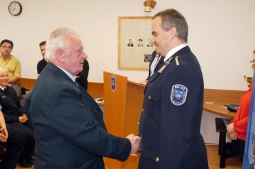 A Balatonfüredi Rendőrkapitányság vezetője állománygyűlésen köszöntötte kerek évfordulója alkalmából nyugdíjas kollégáját.
