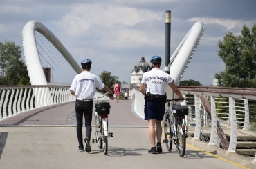 Kerékpáros rendőrök és polgárőrök is vigyáznak a lakosokra Jász-Nagykun-Szolnok megyében.