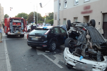 Két személygépkocsi ütközött össze Pécs belvárosában.
