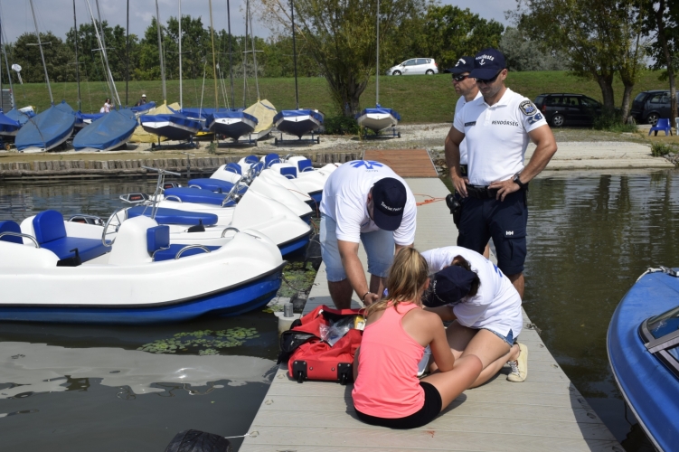 Mentőtiszt hallgatók segítik a Tourist Police programot a Tisza-tónál.