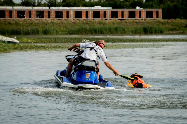 Fürdőzés közben elsodródott kisfiú és felborult kajakosok. Ezek mind csak megrendezett szituációk voltak a Tisza-tavon végrehajtott mentési gyakorlaton.