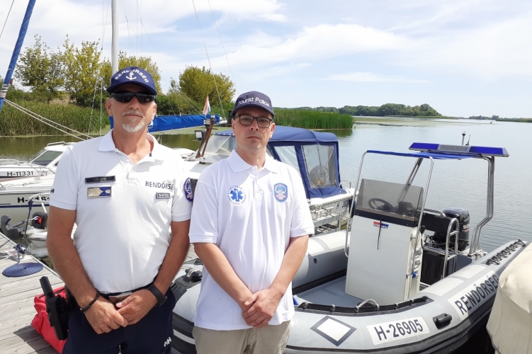 Mentőtiszt hallgató segíti a Tourist Police programot a Tisza-tónál.