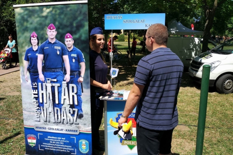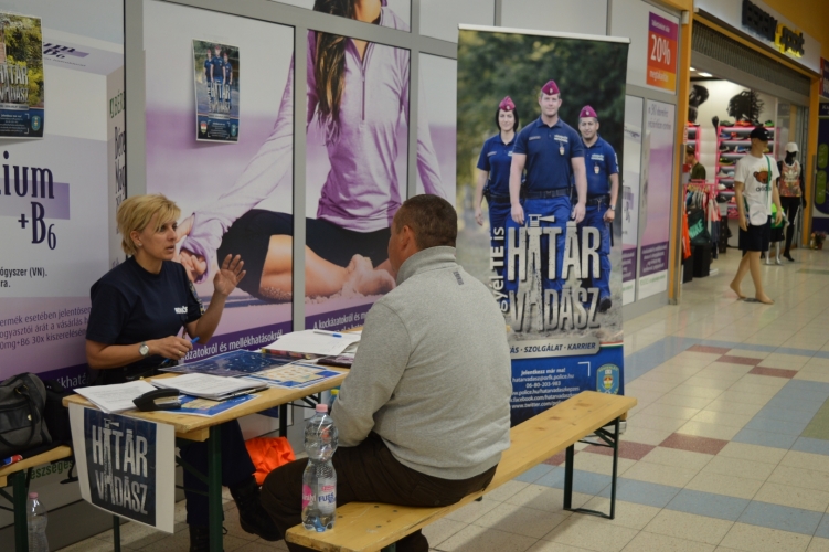 A határvadász toborzók diákjuniálison, falunapon és a polgármesteri hivatalokban is válaszolnak a képzés iránt érdeklődők kérdéseire.
