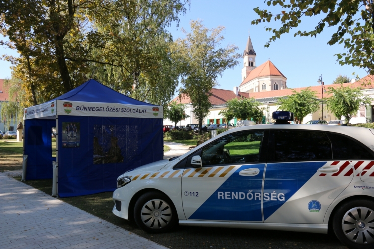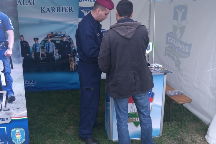 A rendőrség munkatársai Móron tájékoztatják a határvadász-képzés és a rendőri hivatás iránt érdeklődőket.