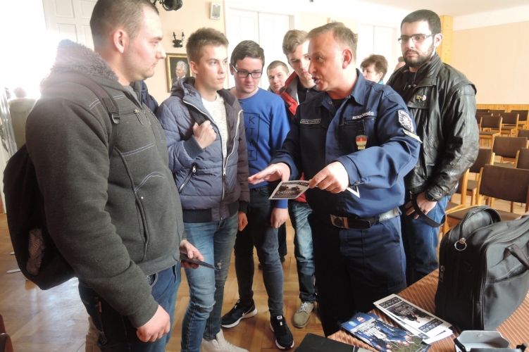 A Győr-Moson-Sopron Megyei Rendőr-főkapitányság toborzói egy győri középiskolában tartottak tájékoztatót a rendőri hivatásról.