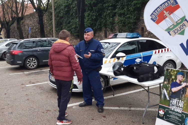 A helyi rendőrkapitányság munkatársai a vásárcsarnok környékén népszerűsítették a rendőri és a szerződéses határvadász hivatást.
