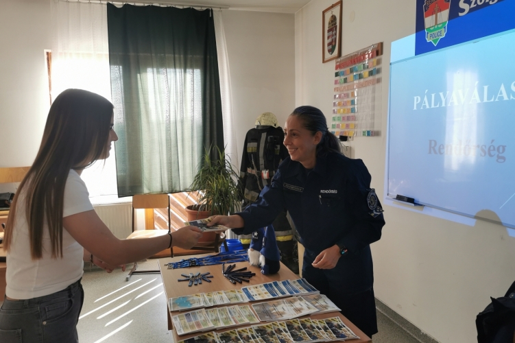 A szentendrei rendőrök hivatásukat népszerűsítették a diákok körében. Most éppen abban a suliban is, ahová egyikük nagylánya jár.