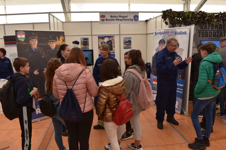 Két napon át oktatási intézmények és munkáltatók mutatkoznak be Békéscsabán, a Csaba Parkban. A Békés Megyei Kormányhivatal Pályaválasztási Vásárán a rendőrség is várja a hivatásos szolgálat iránt érdeklődőket.