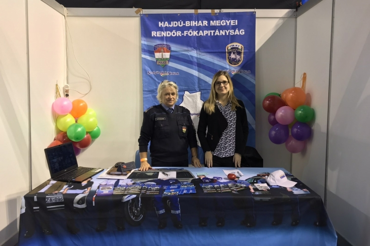 A hajdú-bihari rendőrök egy pályaválasztási kiállításon várták a rendőri hivatás iránt érdeklődőket.