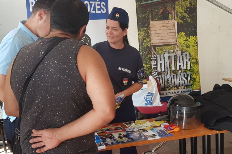 A hajdú-bihari rendőrök a Tiszagyulaházán a megyei polgárőr napon várták a rendőri hivatás iránt érdeklődőket.
