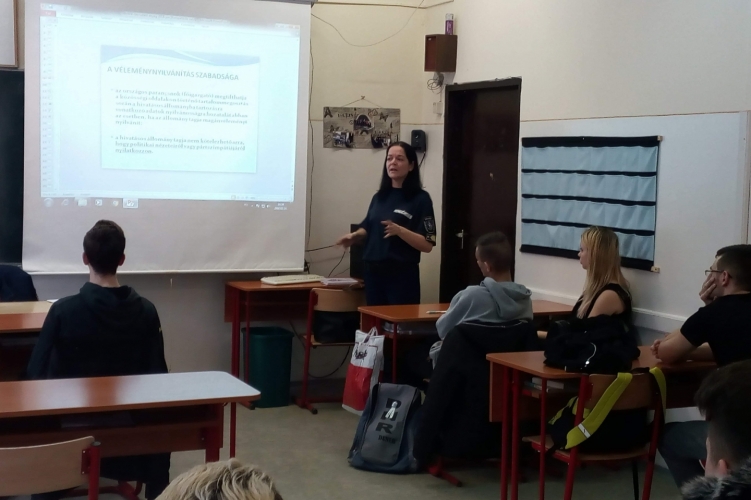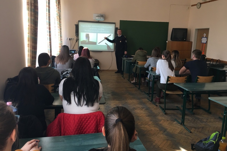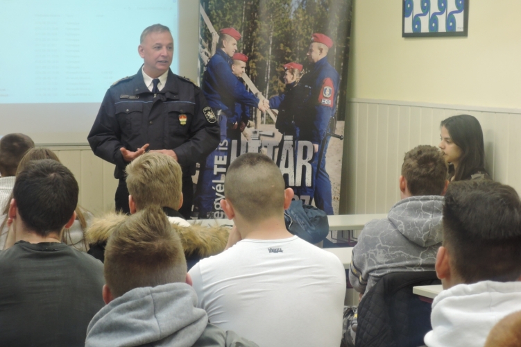 A megyei rendőr-főkapitányság toborzócsoportja egy csornai középiskola végzős diákjai körében népszerűsítette a rendőri hivatást.