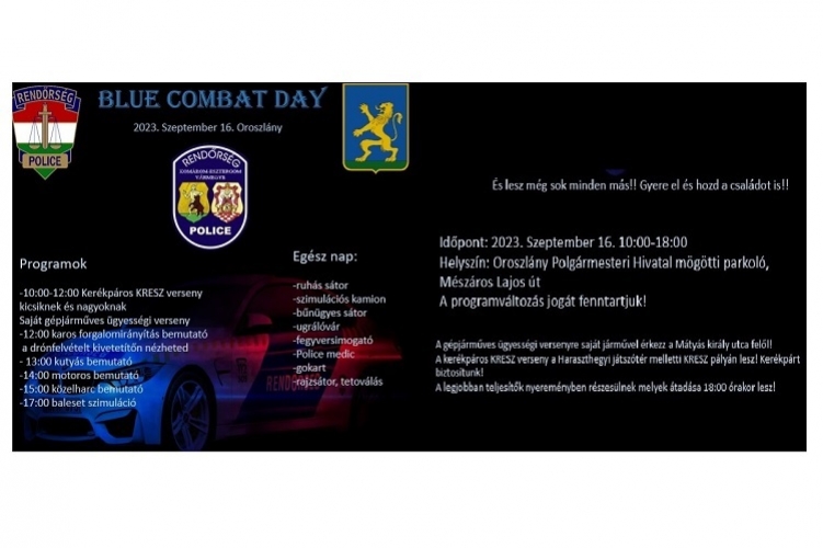 Kerékpáros, gépkocsizó verseny, kutyás, motoros, közelharc bemutató, baleset szimuláció, ugrálóvár, gokart vár minden érdeklődött szeptember 16-án Oroszlányon.