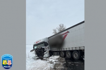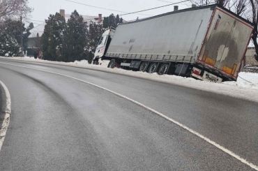Komárom és Kisbér között, a 13-az számú úton, 23-as kilométerszelvényben egy kamion felborult.