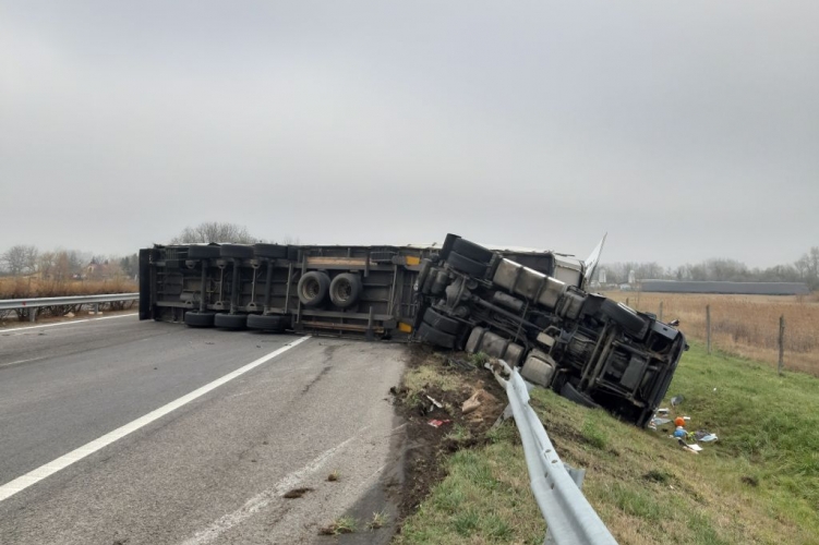 Eddig tisztázatlan körülmények között felborult egy tehergépkocsi az M5-ös autópálya főváros felé vezető oldalán, a 168-as kilométerszelvénynél 2019. december 4-én 12 óra 25 perckor. Az elsődleges adatok szerint személyi sérülés nem történt.