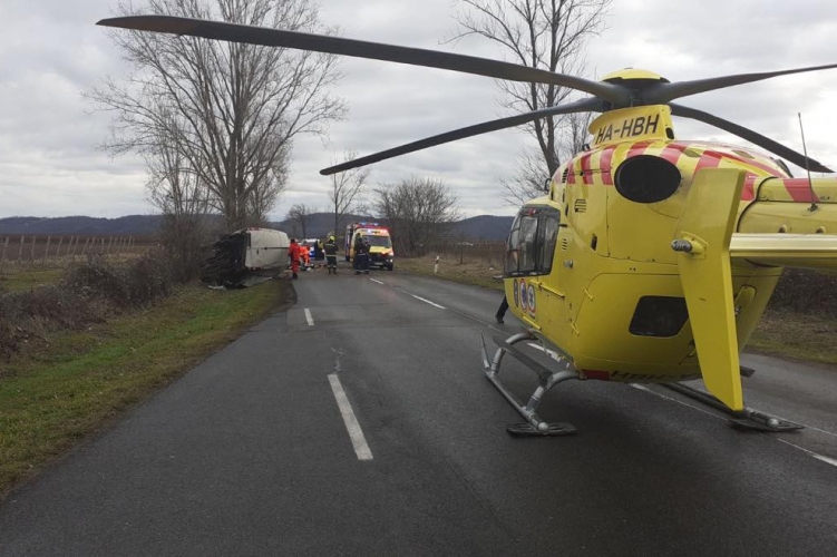 A Harc közelében felborult kisteherautó sofőrjét mentőhelikopterrel kórházba vitték.