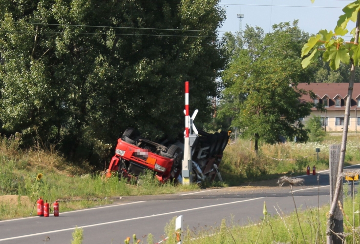 A rendőrök a műszaki mentés és a helyszínelés idejére az érintett útszakaszt lezárták és a vasúti forgalom is szünetel.