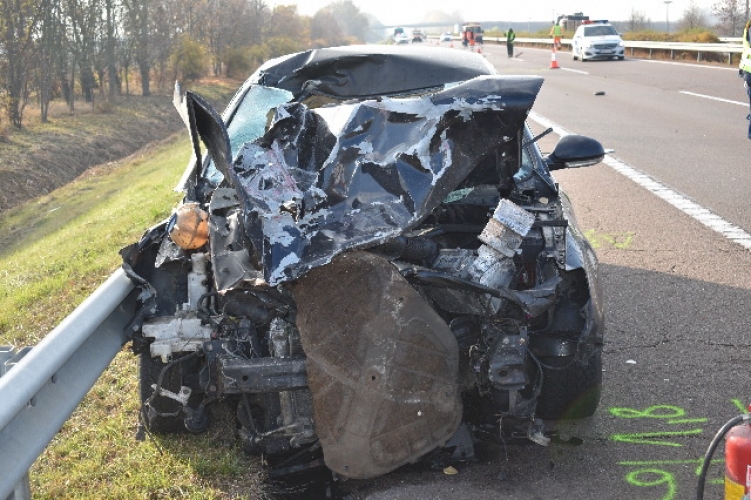 Egy autó ütközött egy tehergépkocsinak az M3-as autópályán, Mezőkövesd közelében.