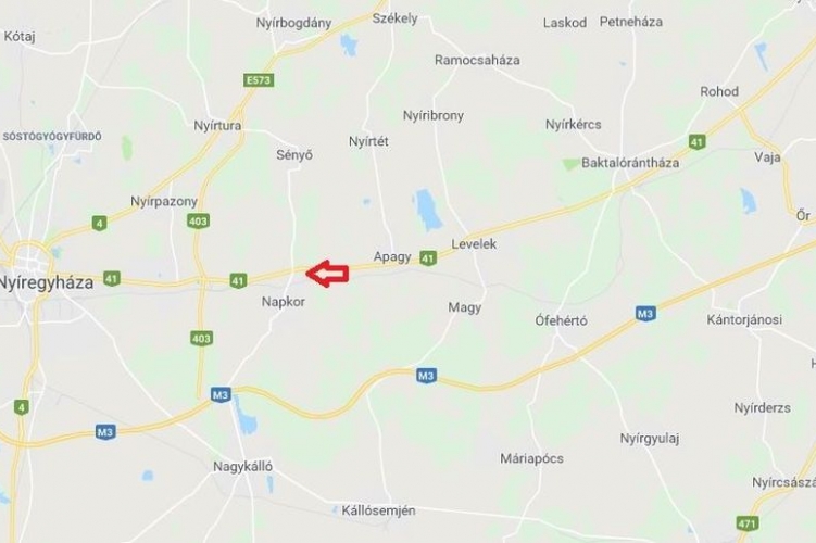 Két gépkocsi ütközött össze eddig tisztázatlan körülmények között a 41-es számú főút 13. kilométerében, Napkor és Apagy települések között 2018. október 2-án 19 óra 40 perc körül. A baleset következtében hárman megsérültek.