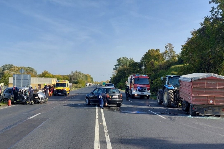 Két autó és egy traktor ütközött össze Szekszárd térségében.