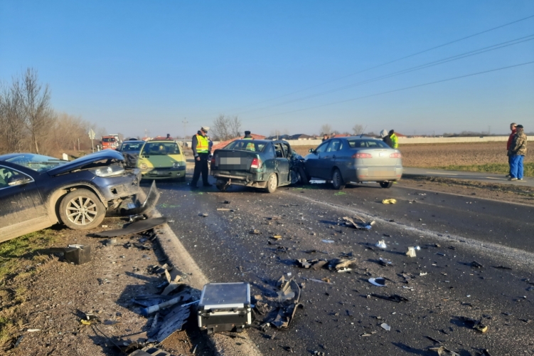 A 3-as számú főúton négy autó ütközött össze, a helyszínelés, és a műszaki mentés ideje alatt a rendőrség az adott útszakaszt teljes egészében lezárta.