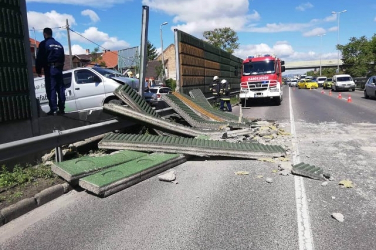 A baleset miatt a zajvédő fal kidőlt, a forgalom félpályán halad.