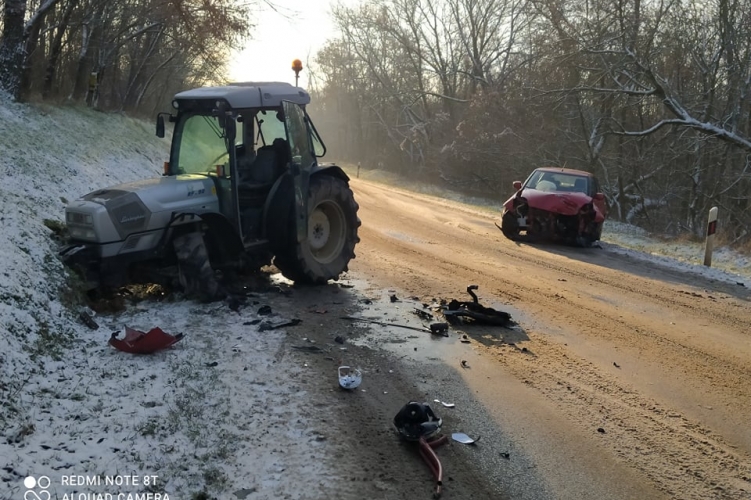 Mint arról korábban beszámoltunk, anyagi káros baleset történt 2021. január 11-én a 65-ös főút 23-as kilométerszelvénye közelében, Hőgyész és Kéty között. Egy személygépkocsi közlekedett a főúton Tamási irányából Kéty felé, amikor eddig ismeretlen körülmények között áttért a menetirány szerinti bal oldalra, ahol nekiütközött a szemből közlekedő kistraktornak.