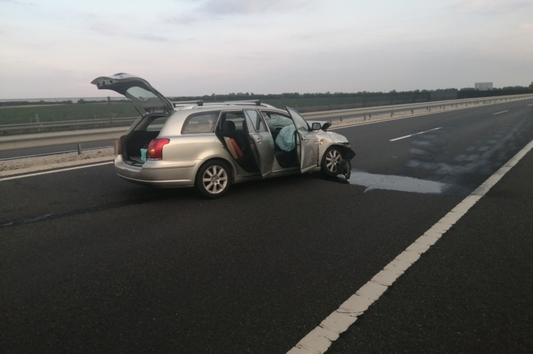 Egy Pécs felé haladó személygépkocsi egyelőre ismeretlen okból az előtte haladó kamion hátuljának, majd a jobb- és bal oldali szalagkorlátoknak ütközött.
