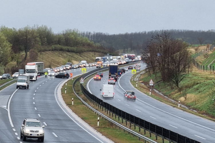 Közúti közlekedési baleset miatt félpályás útlezárás volt érvényben.