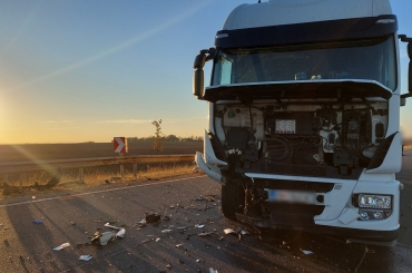 Egy személygépkocsi és egy tehergépkocsi ütközött frontálisan.