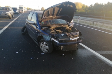 A Budapest felé vezető oldal 80+900-as kilométerszelvényében egy járműszerelvény és egy személygépkocsi ütközött össze.