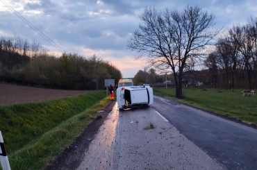 Egy autó oldalára borult Hőgyésznél.