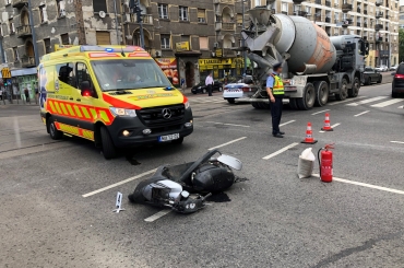 Egy betonkeverő teherautó ütközött egy motorossal a Fehérvári út és a Bocskai út sarkán.