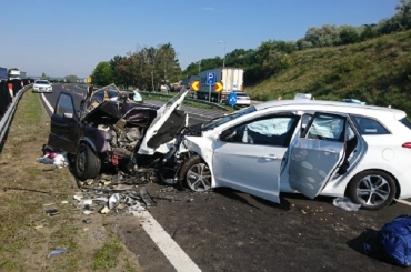 Győr irányába, az 58-as kilométerszelvénynél három személygépkocsi ütközött.