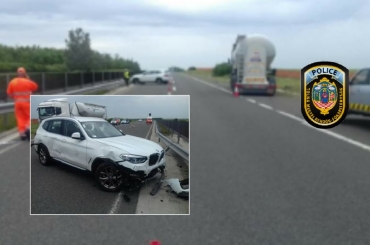 Személyautó ütközött kamionnal Győr és Vámosszabadi között.
