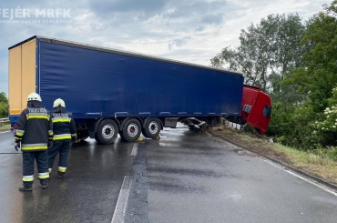 Székesfehérvár közelében befejeződött a korábban árokba hajtott tehergépjármű műszaki mentése.