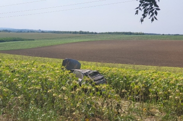 Balra ívelő útkanyarulatban kisodródott egy autó.