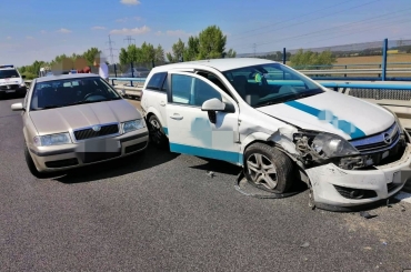 Három jármű ütközött az autópálya Budapest felé vezető oldalán.