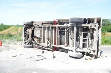 Előzési manőver közben borult fel egy tehergépkocsi Tata és Környe között.