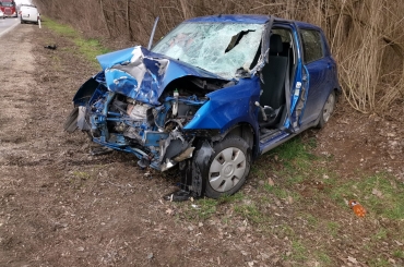 Dinnyés térségében egy személygépjármű munkagépnek ütközött.