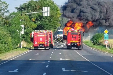 Egy tartálykocsi gyulladt ki Székesfehérvár közelében.