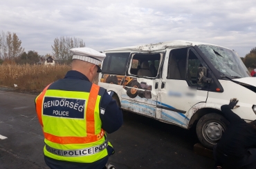 Egy kisbusz és egy személyautó ütközött össze. A balesetben kilencen megsérültek.